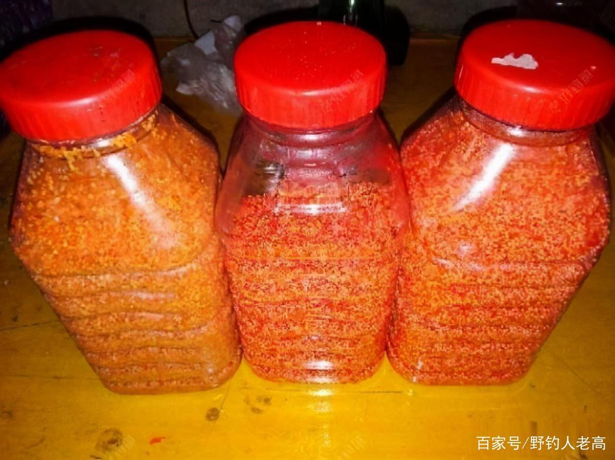 红虫颗粒腥味浓厚,多用于水体清瘦的区,腥味在这种水域很容易受到鱼群注意。但相对11月份的冷水而言,散落、雾化缓慢,可能延长发窝时间。一般情况下,袋装的红虫颗粒,附赠一瓶液体试剂,用于泡制窝料或提升诱鱼效果。笔者实践发现,颗粒中适当添加一些试剂,搅拌均匀投掷窝点,诱鱼效果的确增强,发窝时间也有缩短,所以钓友不要将试剂丢弃不用。如果气温极低,钓友伸手扬竿就有冰冷的感觉,可事先将红虫颗粒置入热水浸泡一些,使其处于半溶散状态后,再投入窝点,这样利于窝料的雾化,加速气味分子的传播,诱鱼更迅速。