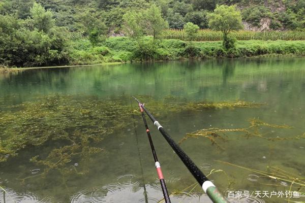 最后是关于钓点深浅的选择问题,地形是钓点选择的一大因素,其次就是水深的选择了,地形和水深都得当,自然更容易钓到鱼。钓点深浅的选择主要跟时间和天气有关,以夏秋季节为例。早晚浅水水温低,鱼会到浅水寻找食物,太阳出来后浅水升温而且光线强,鱼会退回到深水中。需要注意的就是浅水有食物,深水没食物,所以只要条件适宜,鱼肯定需要到浅水寻找食物的。从仲春到仲秋,小雨天都是钓鱼的好天气,而雨天最好钓边,这是因为食物、水温、光线等多个因素影响,让浅水更适合鱼类进食。夏季早晚钓近中午钓深,如果遇上下雨天,全天都可以钓边边。
