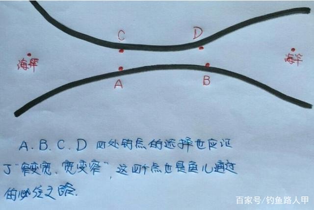 4,宽窄相接处,上图的四个点完全能够符合“宽变窄,窄变宽”的特点,也就是我们常说的连接两个大水面的狭窄水道。这也是鱼儿洄游的必经之处,在这几个钓位作钓渔获肯定不会让你失望。
