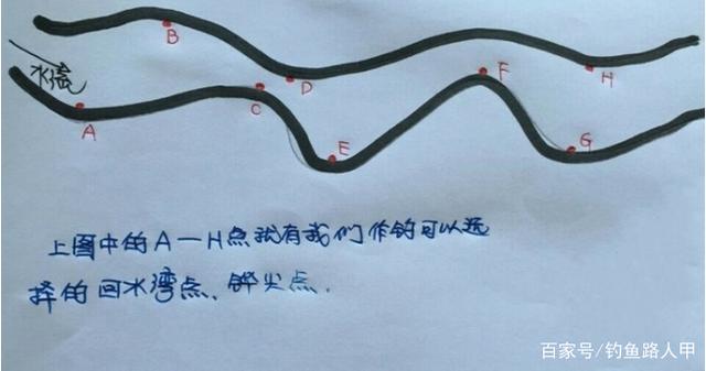 5,桦尖,看了这个图,桦尖是什么样的应该很清楚了吧。上面标的几个钓位,不仅有桦尖还有洄水湾哦。钓友们可以在评论区留言,看看自己中意哪个钓位。