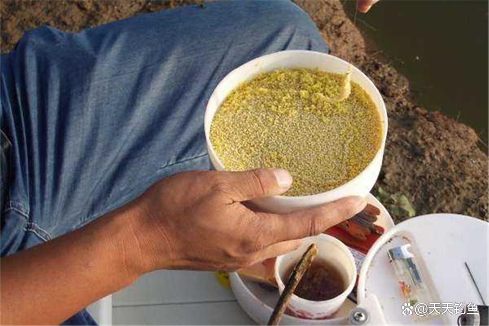 蘸米钓的主料是酒米,酒米本身就不怎么招小鱼,因为小鱼更喜欢味道浓的粉状食物。其次是这种饵料很重,瞬间就能到底,可以轻松穿过中上层的杂鱼层。蘸米钓可以配合七星漂睡钩钓组,但是更多的是配合竖漂钓组使用。上饵可以使用空钩伴侣,准备2个杯子。一杯酒米、一杯空钩伴侣、一杯塘水。空钩蘸水,然后蘸空钩伴侣,再次蘸水之后鱼钩上就会附着一层胶状,然后酒米里蘸一下就完成了挂钩。或者准备一点糖稀,鱼钩用小木棍按到糖稀了,之后酒米里面打个滚也能完成挂钩。