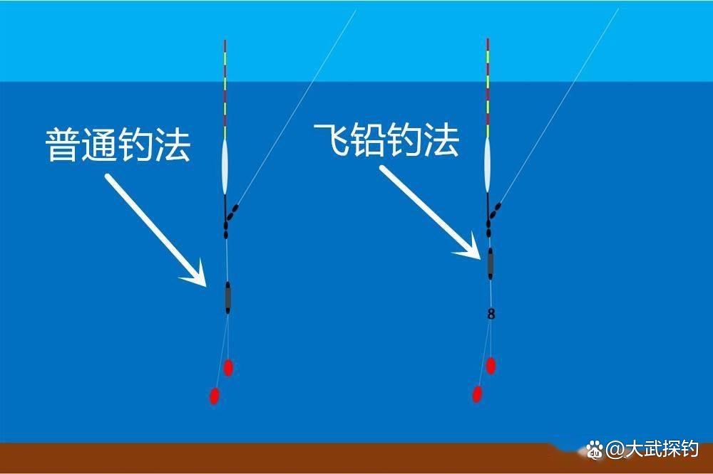 正常底钓发现翘嘴鳊鱼等多泳层活动的鱼类时,可以钓飞铅。飞铅的操作为:把铅皮往漂座方向推,推多少根据具体鱼情决定,一般分为全飞铅和半飞铅两种。(全飞铅即为铅皮座紧挨着漂座,浮漂入水后可以第一时间站立以搜索整个水层的鱼,如果只是感觉鱼离底了,那就使用半飞铅即可。