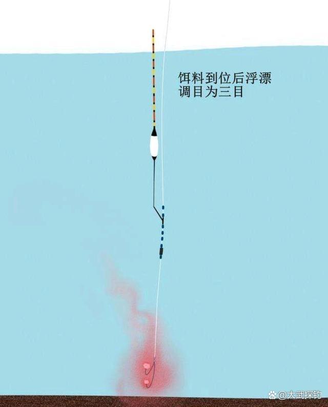鱼吃食时,浮漂信号上浮、下顿可提竿。