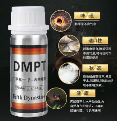 DMPT诱鱼剂中添加了从鱼身上提取的天然荷尔蒙以及有“鱼咬石”的DMPT素,可以刺激鱼儿出现饥饿感,激发鱼群的食欲,提高咬钩率。