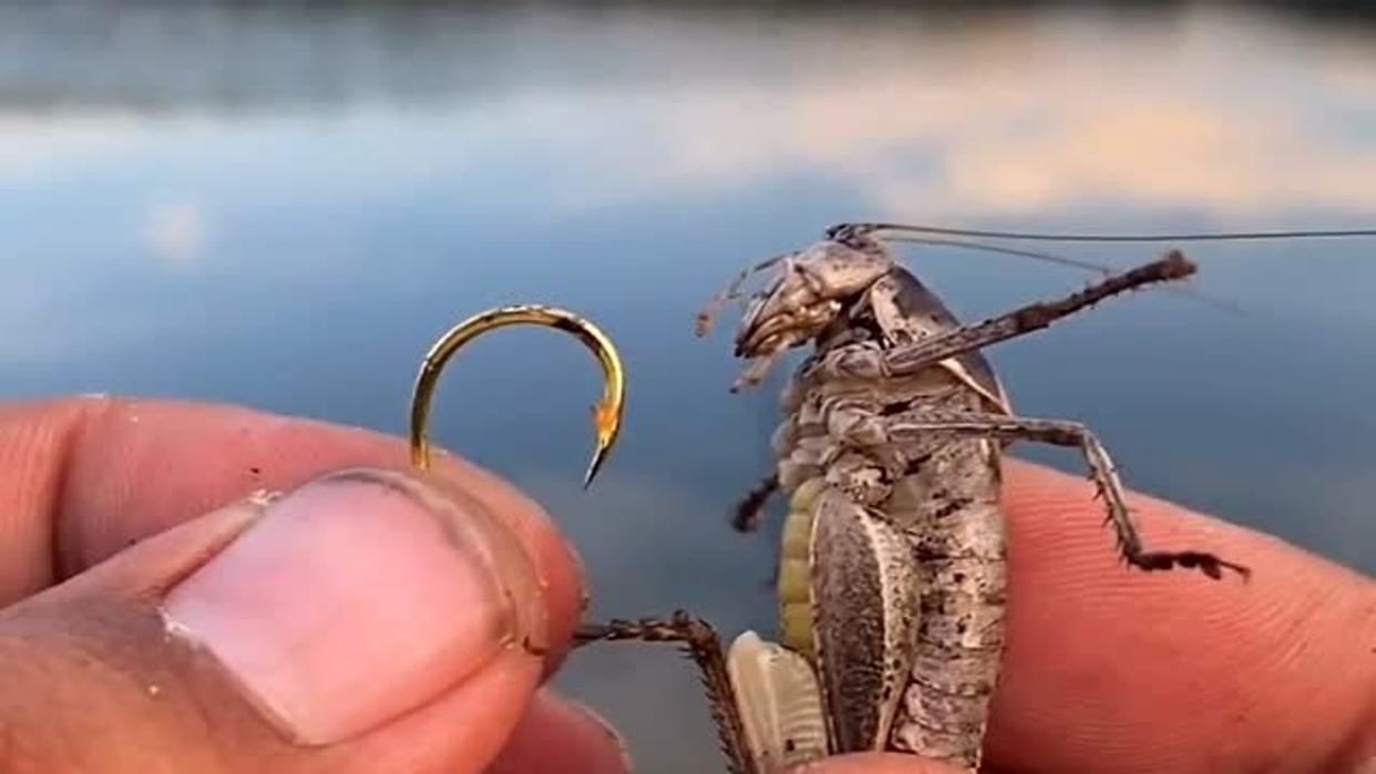 第三个是蚂蚱,它也是一种非常受钓友们欢迎的钓鱼虫饵,取得非常容易。挂钩下水后牵引鱼线模拟游动的小鱼可以吸引像鲈鱼、黑鱼等掠食性鱼类咬钩。