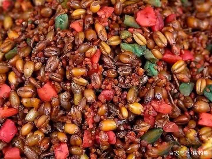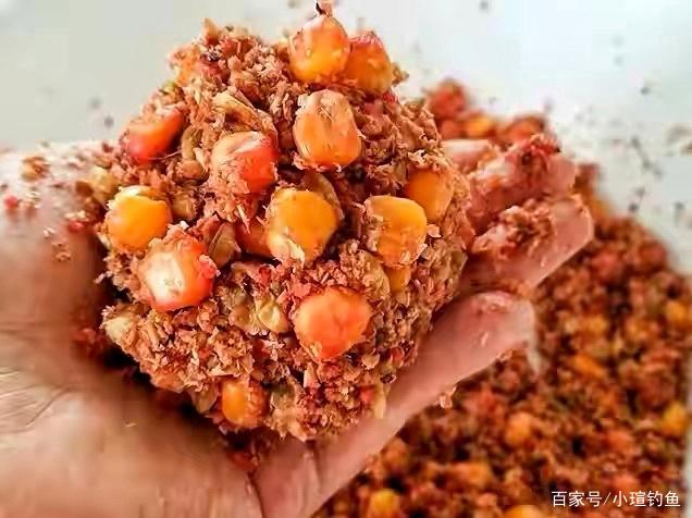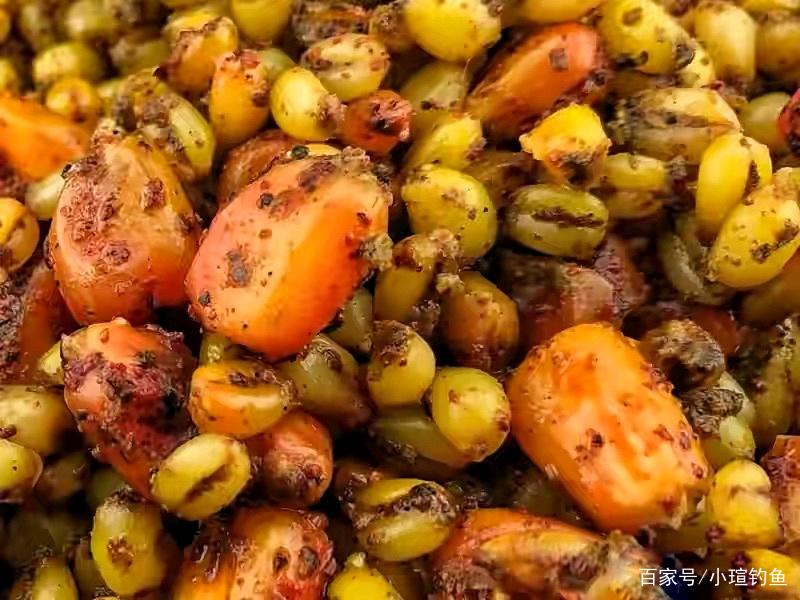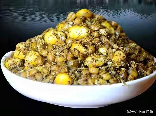 其次我们在制作窝料的时候也要软硬兼施。比如我们在配置针对草鱼的玉米窝料时,可以在玉米的外面散上一层麦麸或者米糠进行同步发酵。这样做出来的窝料,麦麸在水中能迅速散开诱鱼,玉米则不会雾化,能持久留鱼。