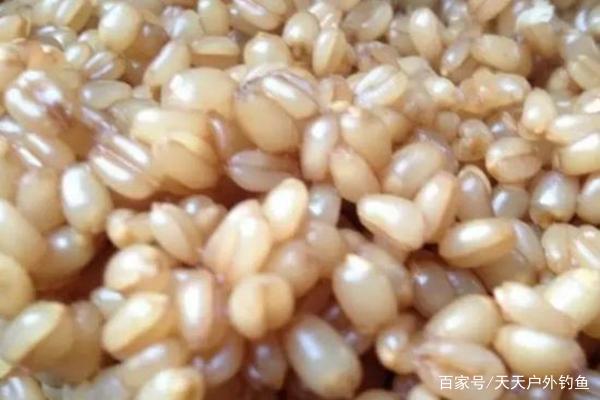麦粒经常作为饵料和窝料使用,反正钓鱼大部分都是使用各种粮食。秋季鱼吃的太多,消化能力减弱,所以更喜欢吃发酵和熟的饵料,这样比较好消化,这个理论是个老钓友跟我讲的,感觉未必全对,但是有一定的道理。首先准备点麦粒,用清水浸泡,去掉浮起来的不饱满颗粒。麦粒浸泡一天就可以泡软,泡软的麦粒上锅煮熟,由于已经浸泡过文火稍微煮下就熟了,再说半生不熟也没关系,鱼又不挑剔,由于做饵使用,所以不能煮开花了,不然不好挂钩,当然做窝料的话煮开花就无所谓了。煮熟的麦粒捞出来,淋干水分,趁热加入一点蜂蜜,一点点就可以,加多了太黏,搅拌均匀既可。最后再加入一点商品饵,搅拌均匀,密封第二天就可以使用。至于加什么商品饵看个人习惯和季节,可香可腥。
