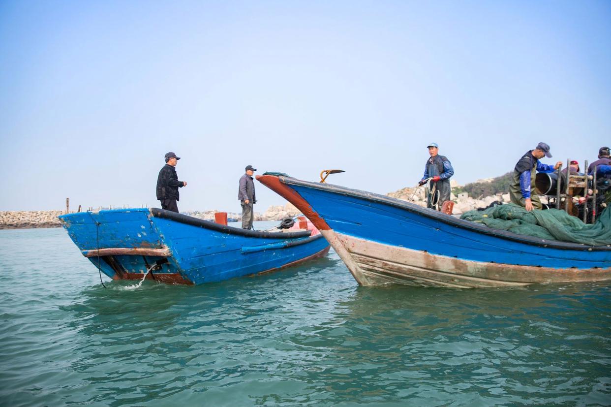 这里是平潭旅游南线的一个渔村——澳前镇前进村,与有名的68海里景区在同一条直线,相距并不远,它同样可以说是祖国大陆离台岛最近的地方,特殊的地理自然有特殊的情怀,所以住进悦尚民宿之前,林小岛说会带我们出海抓海鲜就让我们异常兴奋,以至于把行李放进悦尚民宿后,没来得及感受环境就匆匆出海,码头就在民宿门口的海滩边,这个海滩也是平潭追蓝眼泪的热门点之一,据其他客人讲,昨晚他们就在这里追到了特别浪漫的蓝眼泪,让人羡慕不已,也庆幸我们居然住到一个这么好的位置。