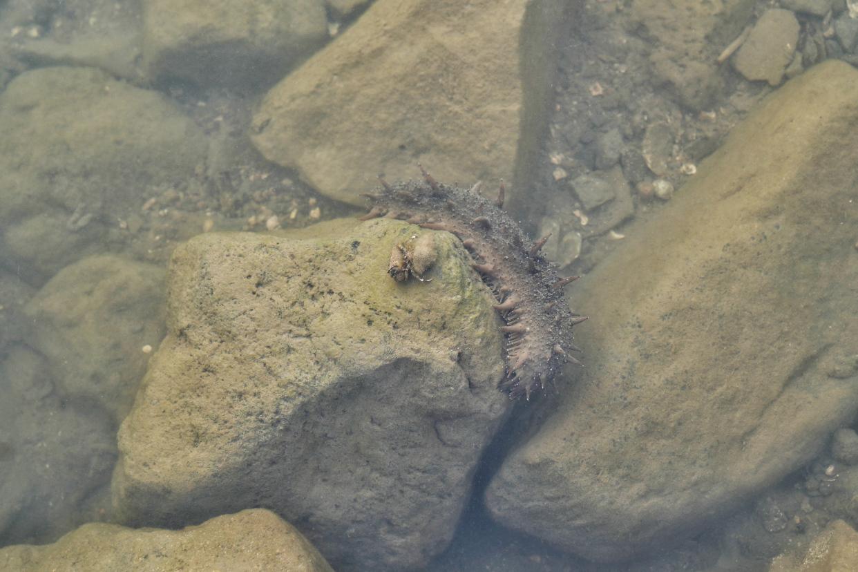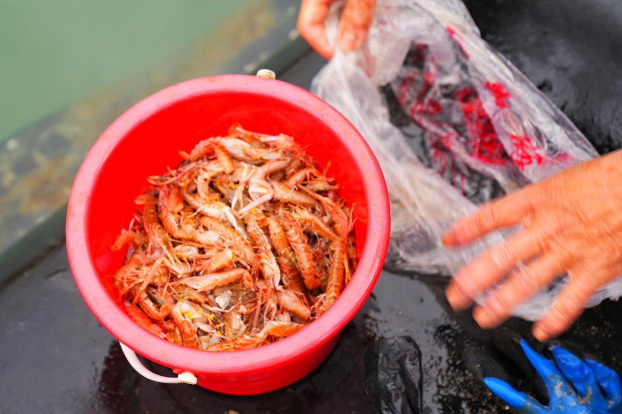 桑岛现在有很多海鲜可以吃,海参、海蛎子(生蚝)、鲫鱼、鲅鱼、黄花鱼、鲳鱼、鱿鱼、扇贝。我来的时候,还有渔民就在海边捕捞, 新鲜的海鱼10块钱一斤,海虾20一斤,拿回去自己做,都特别的鲜美。