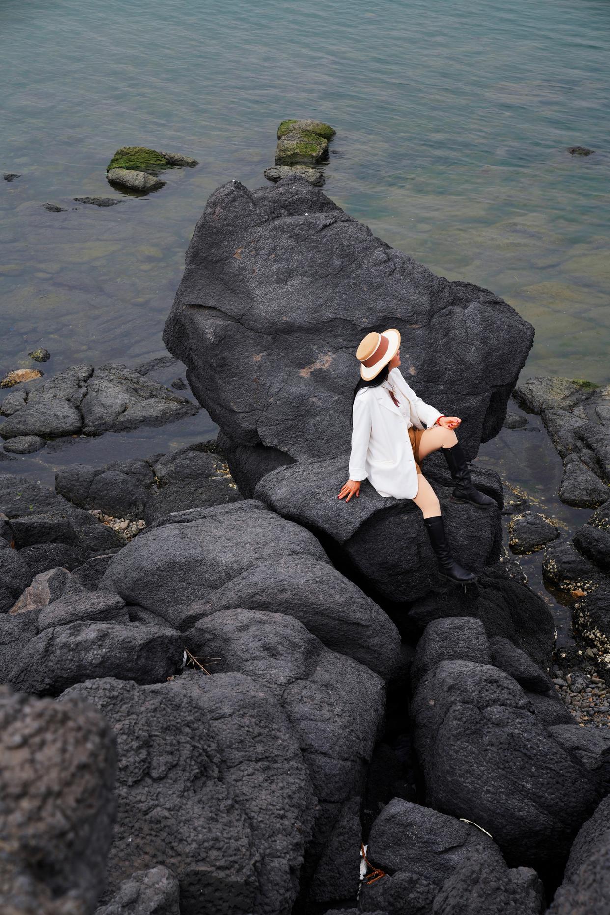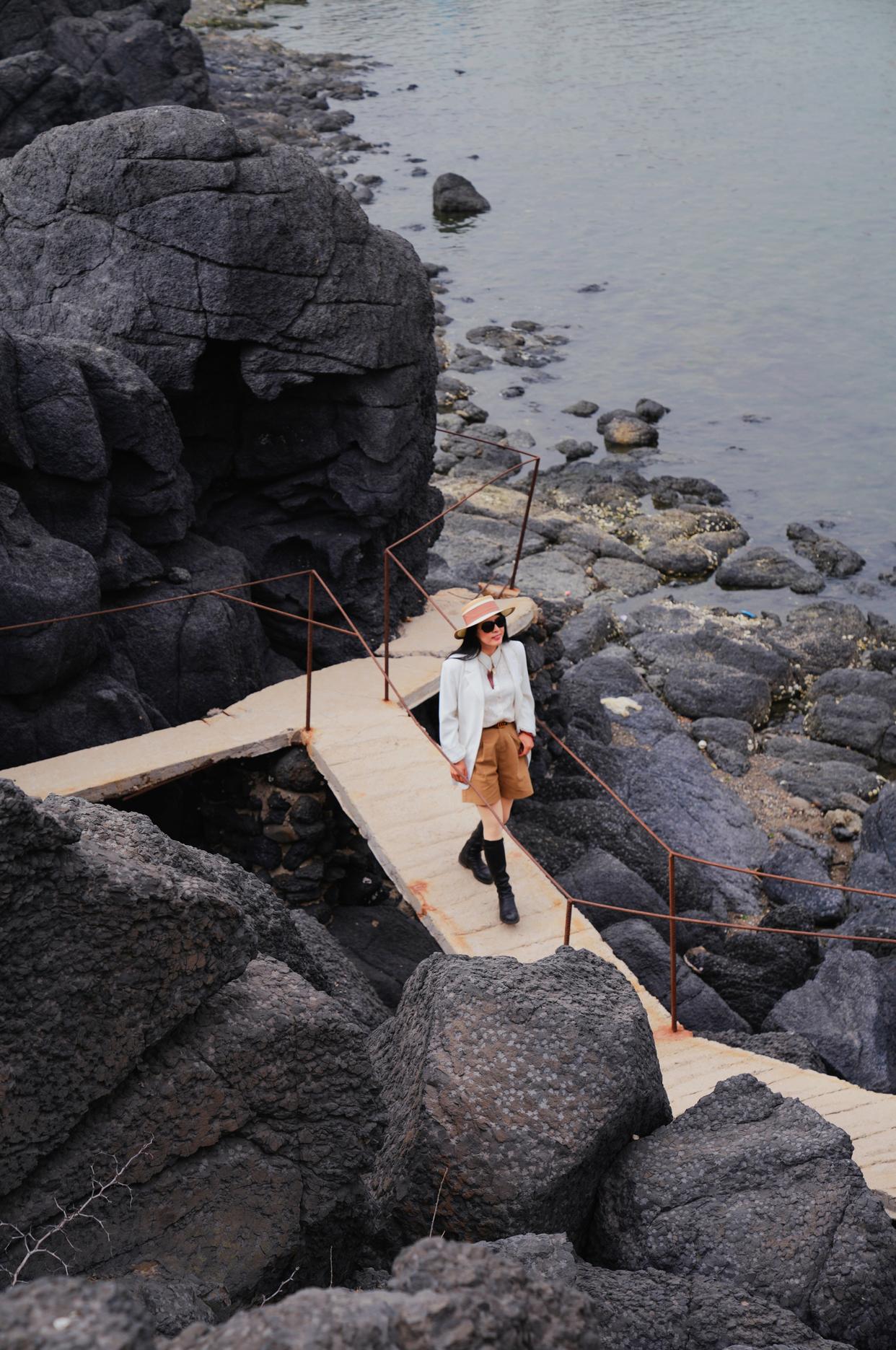 桑岛环境优美,空气清新,海边的火山石十分适合旅拍,拍出来的照片感觉酷酷的。