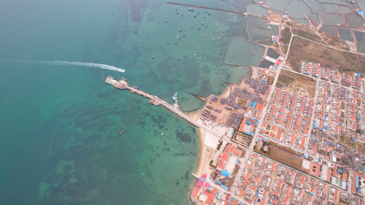 从航拍的角度俯瞰桑岛,可以看到鳞次栉比的小房子,岛上一共有六百多户,2000多口人,桑岛上的渔民,家家都有渔船,便宜的三四十万,贵的七八十万,每家都有上百万,真的是很富裕。
