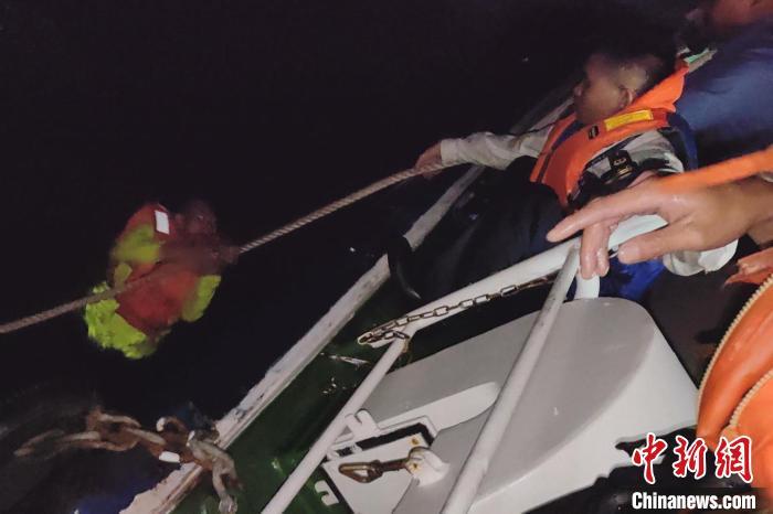 “到达事发水域附近时,我们减缓船舶速度,借助探照灯等设备在漆黑的海面上不断搜寻,发现不远处有灯光一闪一闪。我们靠近灯光位置后,发现正是落水人员,4人冻得瑟瑟发抖,惊慌失措正焦急等待救援。船上立即向遇险者抛送绳索,并合力将其拉上海巡船。”参与救援的海事人员邹建云说。