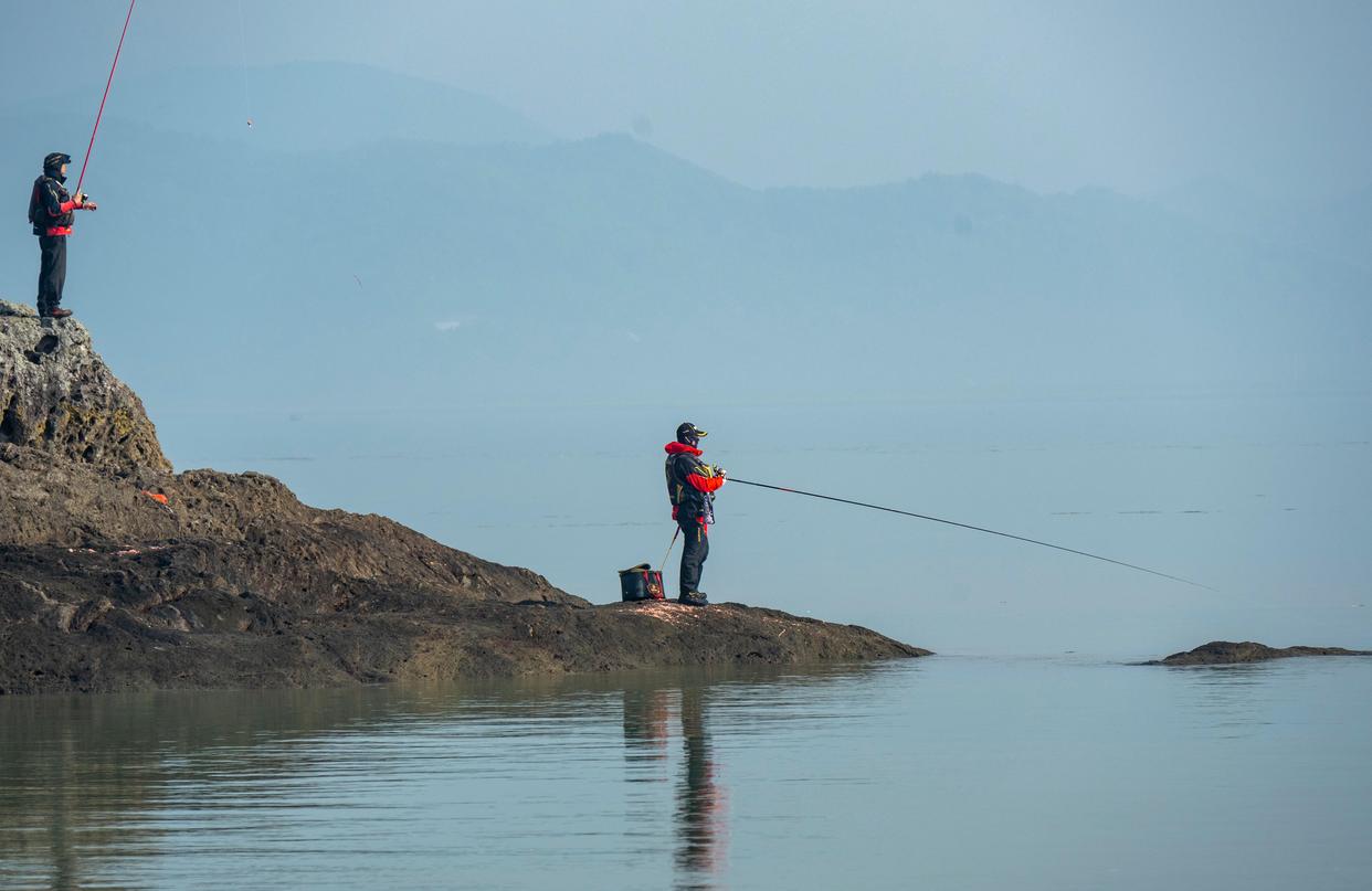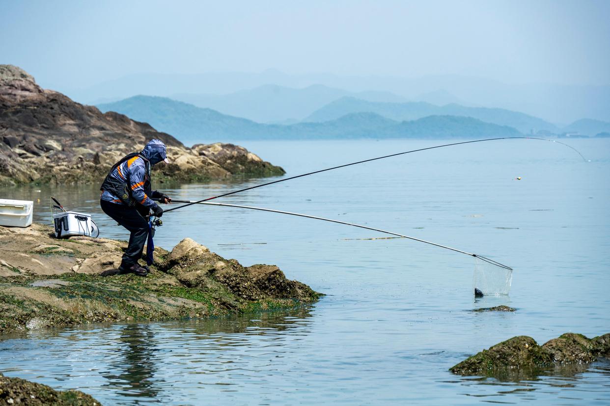 打窝、挂饵、抛竿……参赛选手们稳立礁石滩上,有条不紊地临风垂钓,展现出高超的专业素质。静待片刻,便有选手看准起伏的浮漂抬竿收线,一尾破水而出的大鲷鱼在阳光下闪闪发光。据悉,为保护海洋资源,本届大赛规定22厘米以内的鲷类对象鱼以及125克以内的综合鱼种将直接放生。