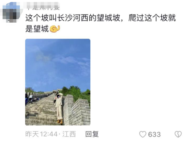 还有网友晒出自己在爬“望城坡”的照片,表示只要自己“爬过这个坡就是望城”。