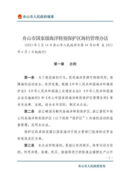 原标题:《全国首创!舟山出台保护区海钓管理办法》