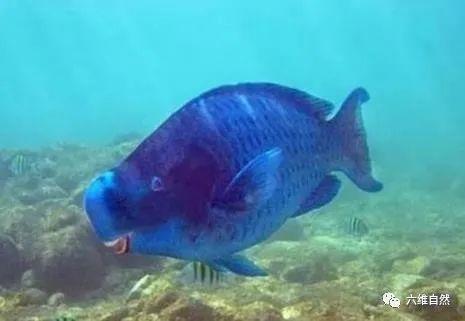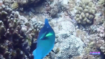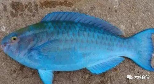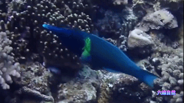 蓝鹦嘴鱼也是一身蓝色的鱼,几乎全身都呈蓝绿色,眼以下头侧面蓝绿色,呈一边缘清晰蓝绿色大斑,齿板绿色。它们的牙齿有些接近人类的牙齿,所以它们也会表现出一些表情,有些时候就好像在对着你微笑,非常呆萌的表情,是一种非常有喜感的鱼类。