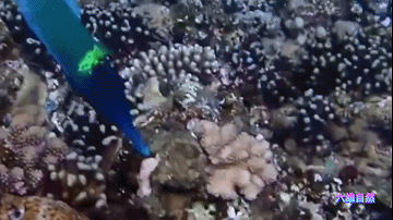 几乎各种颜色的鱼都有,有些鱼类由不同的颜色组成,更显五光十色,雄性杂色尖嘴鱼也是一种蓝色和绿色组合的鱼,这样的鱼类也有不少: