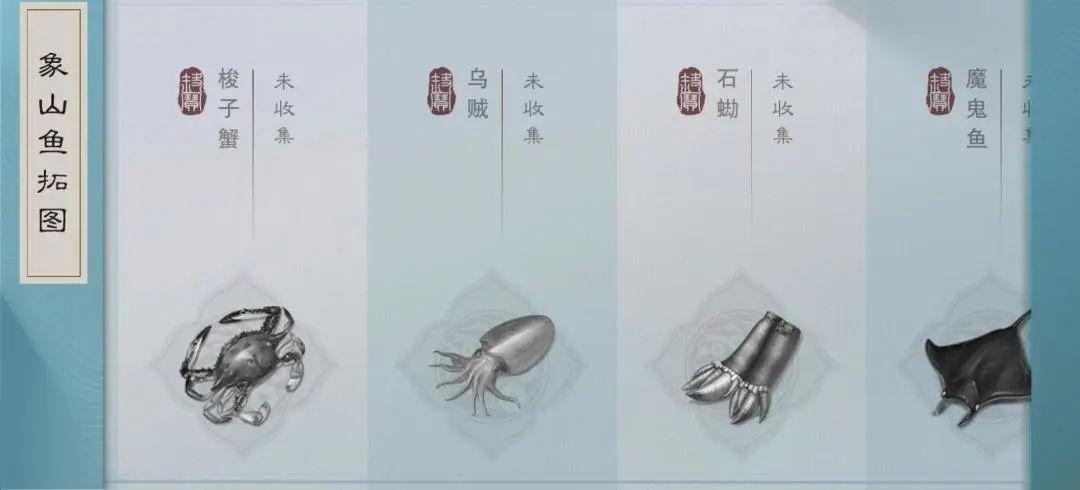 当然除了海钓玩法以外,可别忘了欣赏眼前的美景。阳光明媚的沙滩、临海垂钓的渔民、一望无垠的汪洋,领略满满的海岛风情后还可以感受一波底蕴深厚的渔家文化,赏览远在东海之滨的象山风俗风情。象山非遗文化的鱼拓艺术这次也有来到一梦江湖噢,玩家们在“慕海开洋”玩法中钓到的鱼儿品种将会被记录到鱼拓图中,一起欣赏这一传统艺术吧!