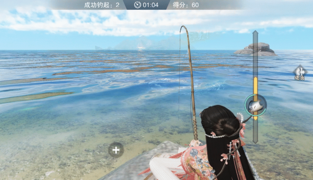 现场人头攒动,看我不止我一个人想当“钓鱼佬”。没有机会去线下体验钓鱼的乐趣,但这次足不出户就可以在一梦江湖里体验了。来到渔人码头进入象山场景后,自行找到喜欢的垂钓点以后,只需点击按钮便会自动抛竿进入慕海开洋玩法。限时两分钟的时间里,要尽可能的钓上更多更稀有的鱼获取更高的积分,成就感不言而喻!
