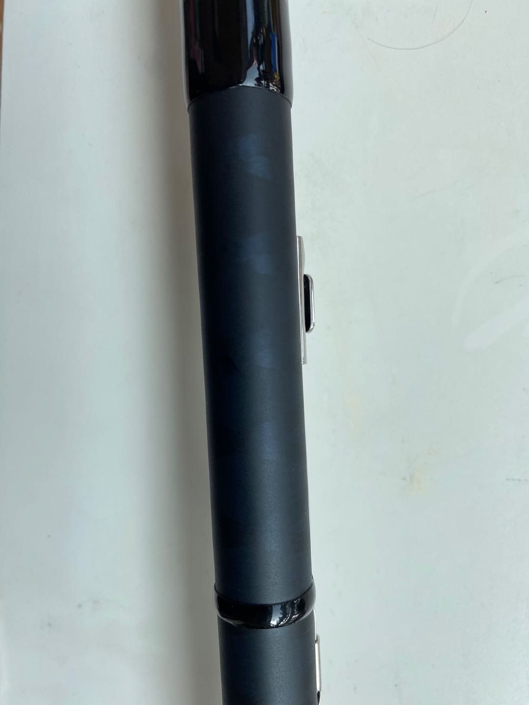 不得不提一下这个竿稍节,能看到一个粗细过渡的锥度非常明显,这样在实际钓鱼使用中竿稍的断裂几率是相当高的。希望达亿瓦的碳布缠绕技术能挽回一些。