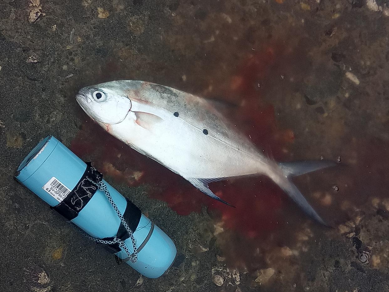 在盐寮渔港钓到的1斤多的幽面,它学名斐氏鲳鲹,特点是身上有两颗“美人痣”