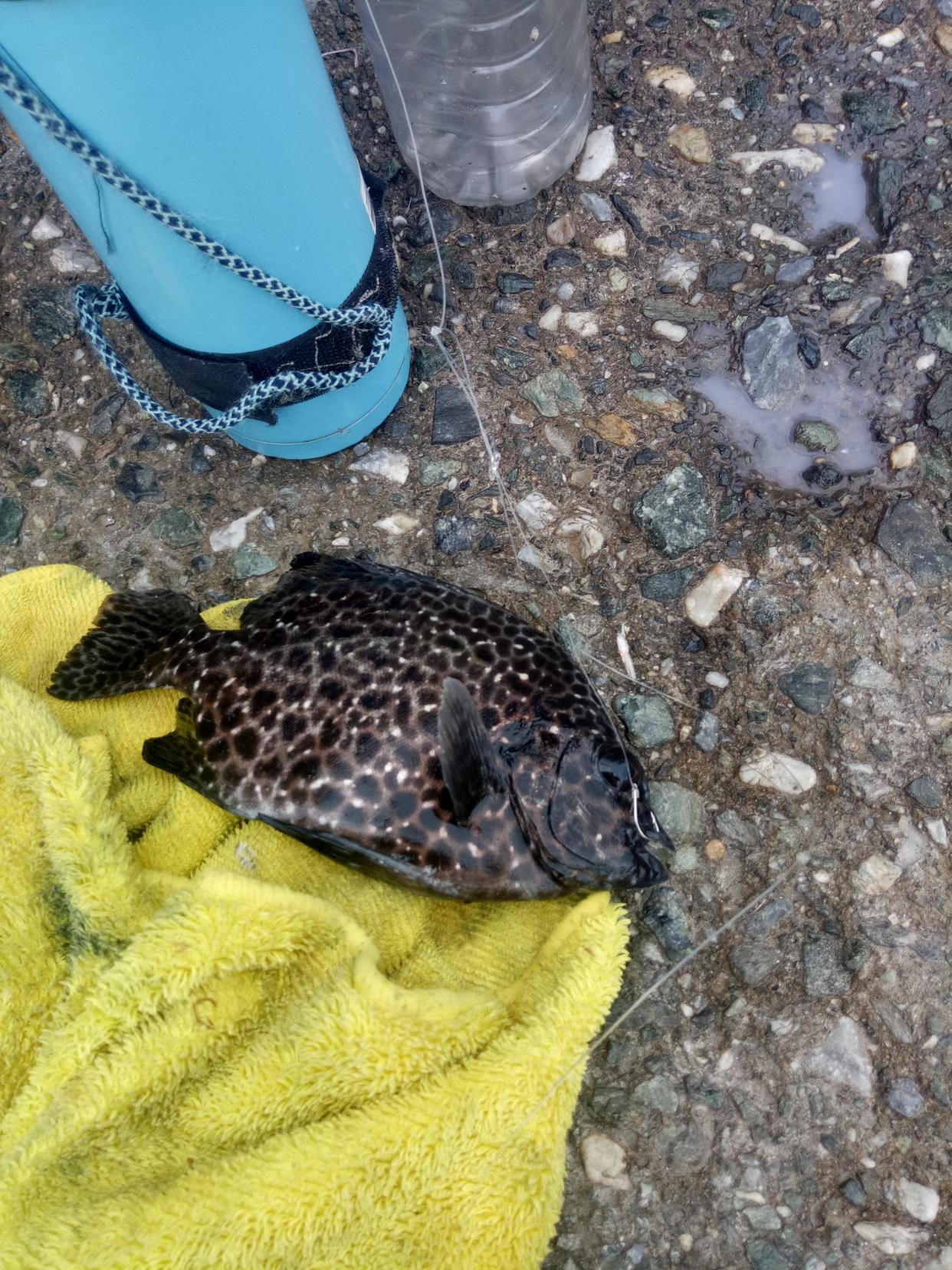 眼见日薄西山,我开始收竿,钩子拖回至眼前,竿梢竟猛然下沉,直觉判断这是只不小的家伙,跟它拼斗了几分钟,竟然收上一条1斤多的石鲷鱼。