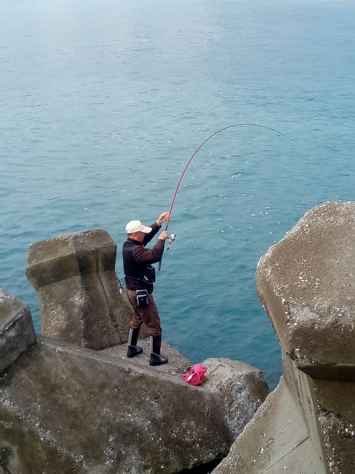 当天有不少浮游矶钓的钓客,跟他们闲聊后得知,左手边的防波堤昔日深入大海1公里远,后来被台风吹毁了一半,失掉了它的功能,也导致了它的荒废。