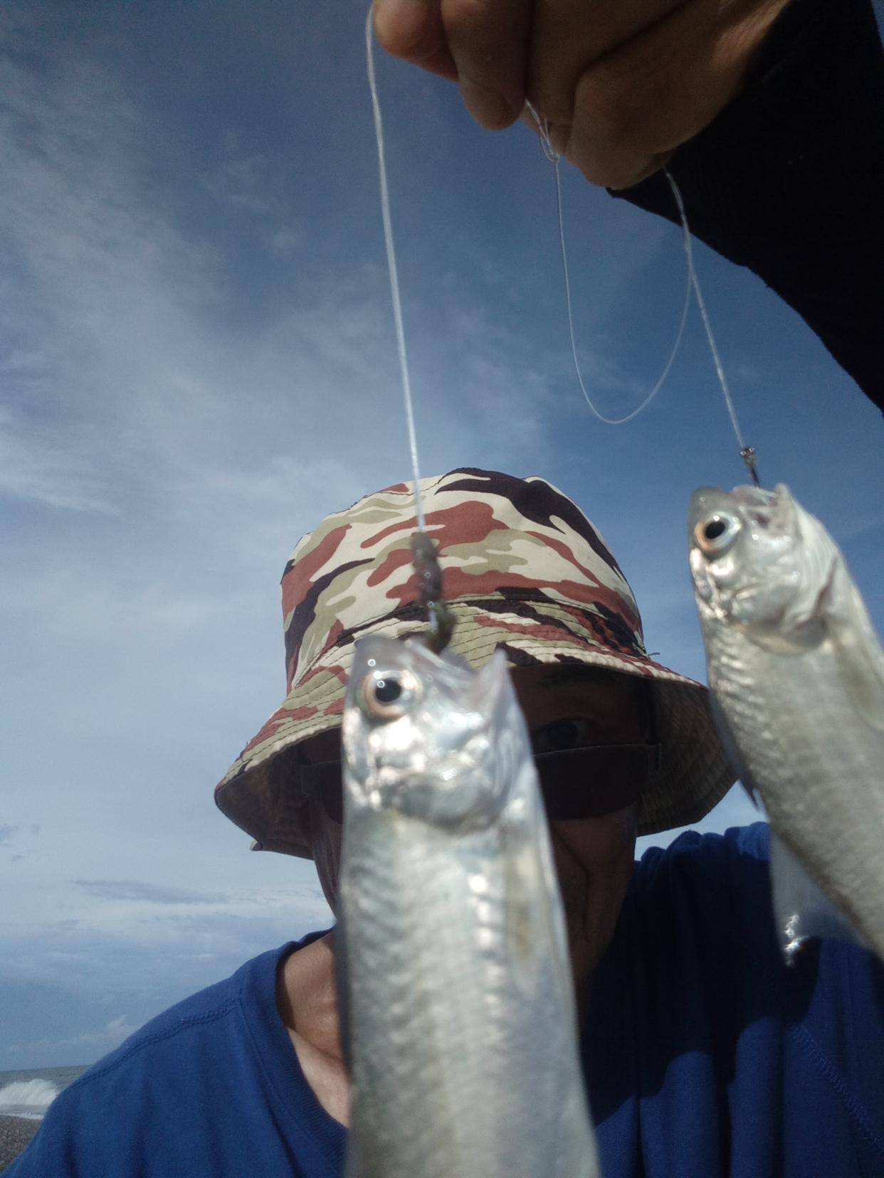打听后得知,这些都是在沙滩浪头觅食的滩钓鱼种,有他们俗称的呱呱仔、幽面、午仔、甘仔、金钱仔(台湾本土人讲的闽南语很多以”仔”结束,发音类似普通话的“妈”),也有成群出没的沙丁、沙梭。