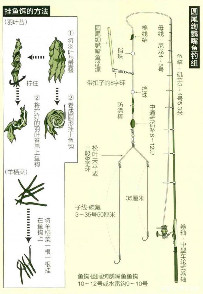 矶钓圆尾绚鹦嘴鱼,翻译来自《日本図解釣り入門 基礎から始める 海のウキ釣り入門》