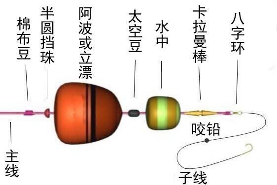 以上是矶钓的主要装备,接下来就是矶钓的线组搭配了,这里用文字很难具体表达,看下面的线组吧,我将其进行了简化,一目了然,唯一需要说明的是,我个人更喜欢用棉布豆来替代棉线结,棉布豆固定方便,移动也方便,比棉线结要好用些。矶钓线组直接到渔具店可以买到成品,组装按下图很方便。