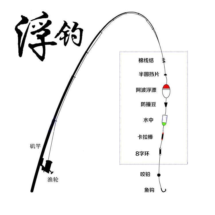 上图是比较正式的钓组,水中一般我没有用,也可以不要,比如5B的啊波漂,你配一个5B的咬铅在8字环绑主线那个地方就可以了,子线一般配1.5米左右就行!