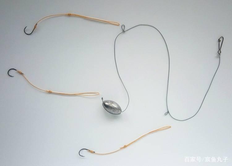 这种线组的设计,是和矶钓滑漂线组基本相同,在八字环链接处将串钩线组装好,然后再将串钩底下链接一个铅坠,重量和浮漂基本相同无需调漂。铅坠是固定浮漂,抗击风浪、水流作用,有鱼吃钩时,
