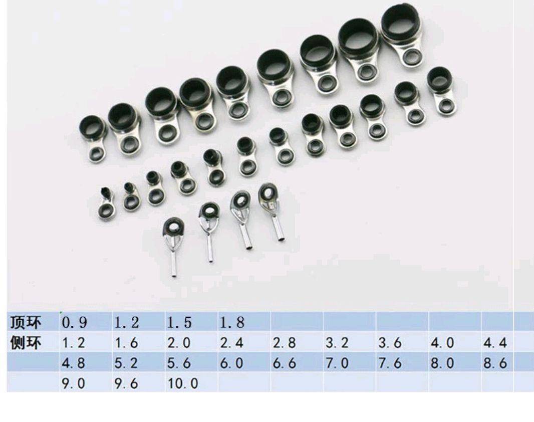 比如:鱼竿先经在1.4毫米,就要选择1.5-1.6毫米的导环,预留胶水的空间,才能使矶竿长时间导环不脱落。