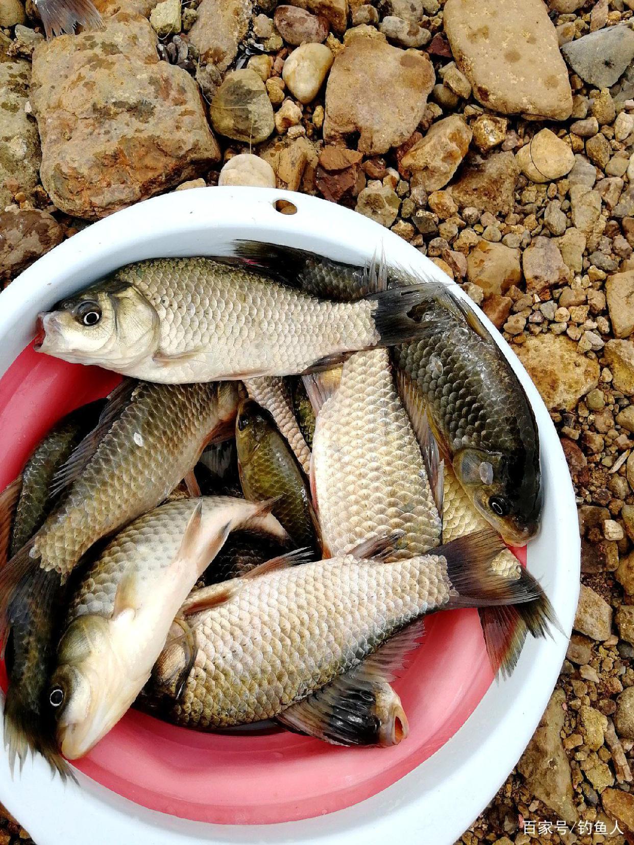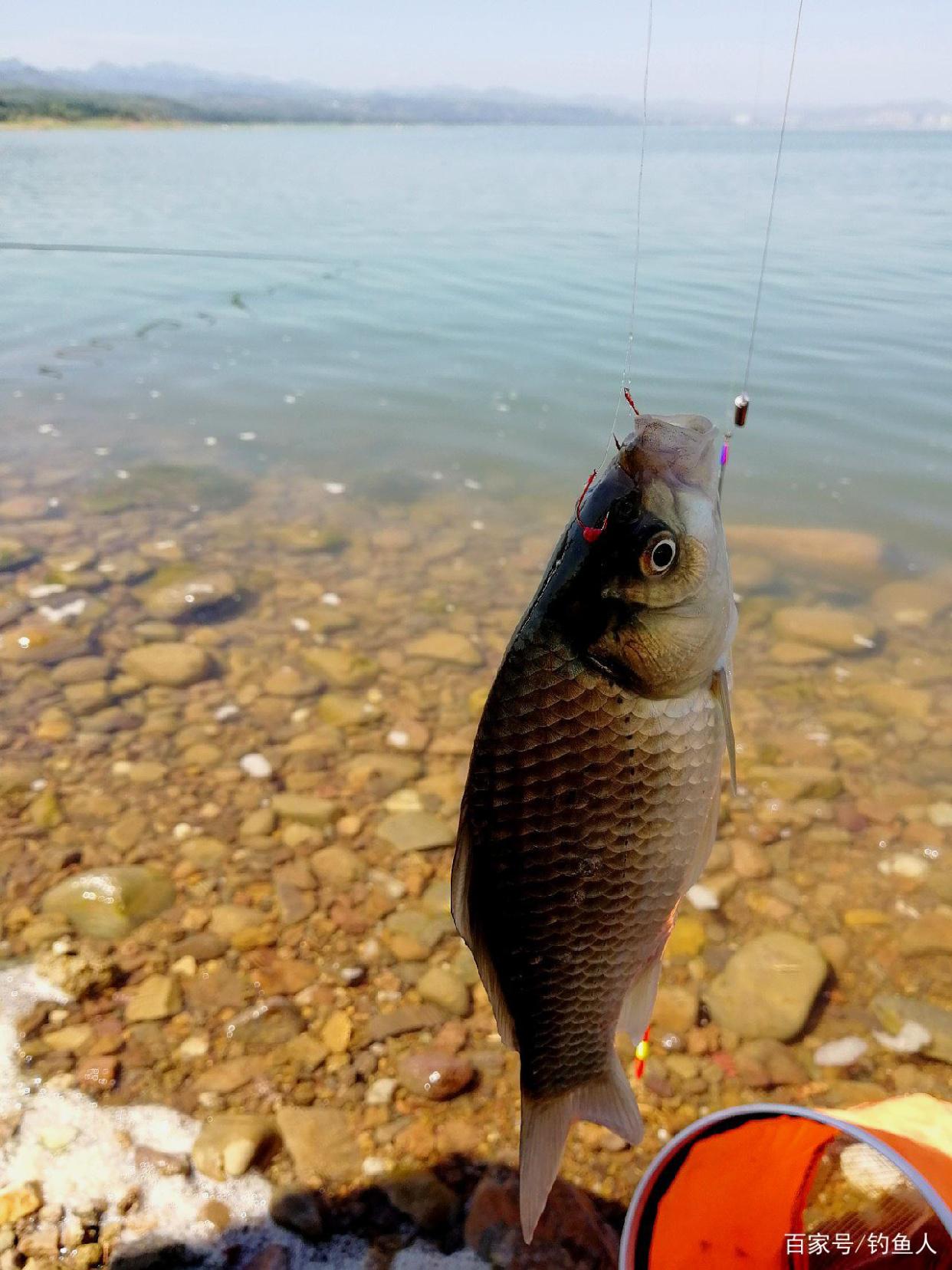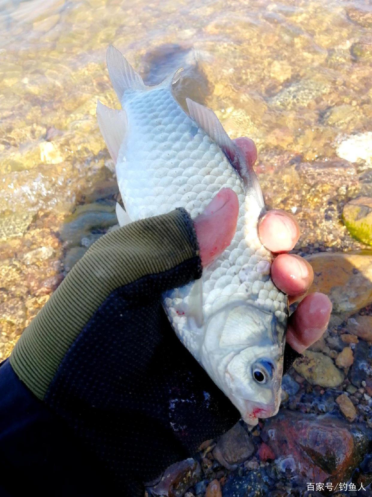 果然是鱼在远外,抛投操作还不熟练,东一榔头西一棒子。大师是指哪儿打哪儿,咱是打哪儿指哪儿,嘿嘿!差距啊!努力练习。但是!但是!!上鱼是硬道理……哈哈整个湾子鱼口并不好,上鱼也是断断续续的。起步三两朝上,中午开始刮风了,特别是下午逆光。在刺眼的阳光下,二十多米外的滑漂只露一个黑头影子,随波起浮,错过了几个小顿口。