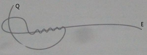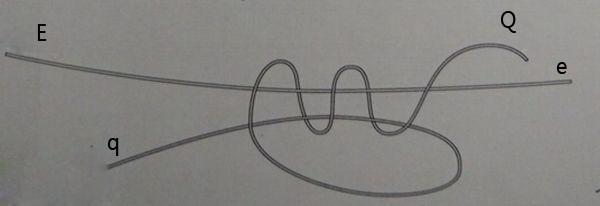 ④加以润滑后同时抽拉E、Q两端,慢慢抽紧线结并剪除丝头即可。