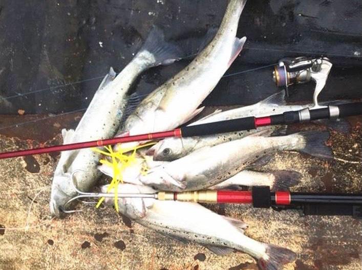 由于海鲈鱼力量大,为了利于搏鱼,手竿尽量长一些,可选用5米4以上的28调偏硬竿。