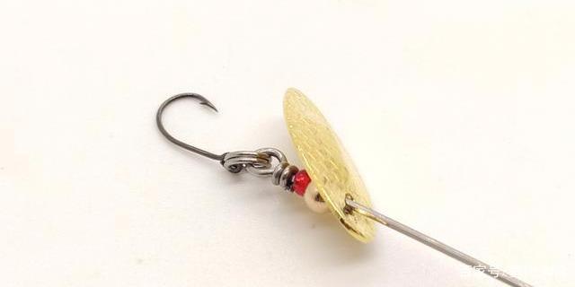 当然,除了助力抛投的助投器外,瓜子亮片的作用仅仅是诱鱼,并不是用来钓鱼,所以在瓜子亮片的下方我们还要自己绑制鱼钩,一般选择2号的金色袖钩最佳,并且在鱼钩的上方传入一粒太空豆,保证亮片与鱼钩之间存在一定的间隙(越小越好,一般几毫米即可),防止鱼钩距离亮片过近,导致亮片在水下不旋转的情况,不能发挥出它应有的效果。