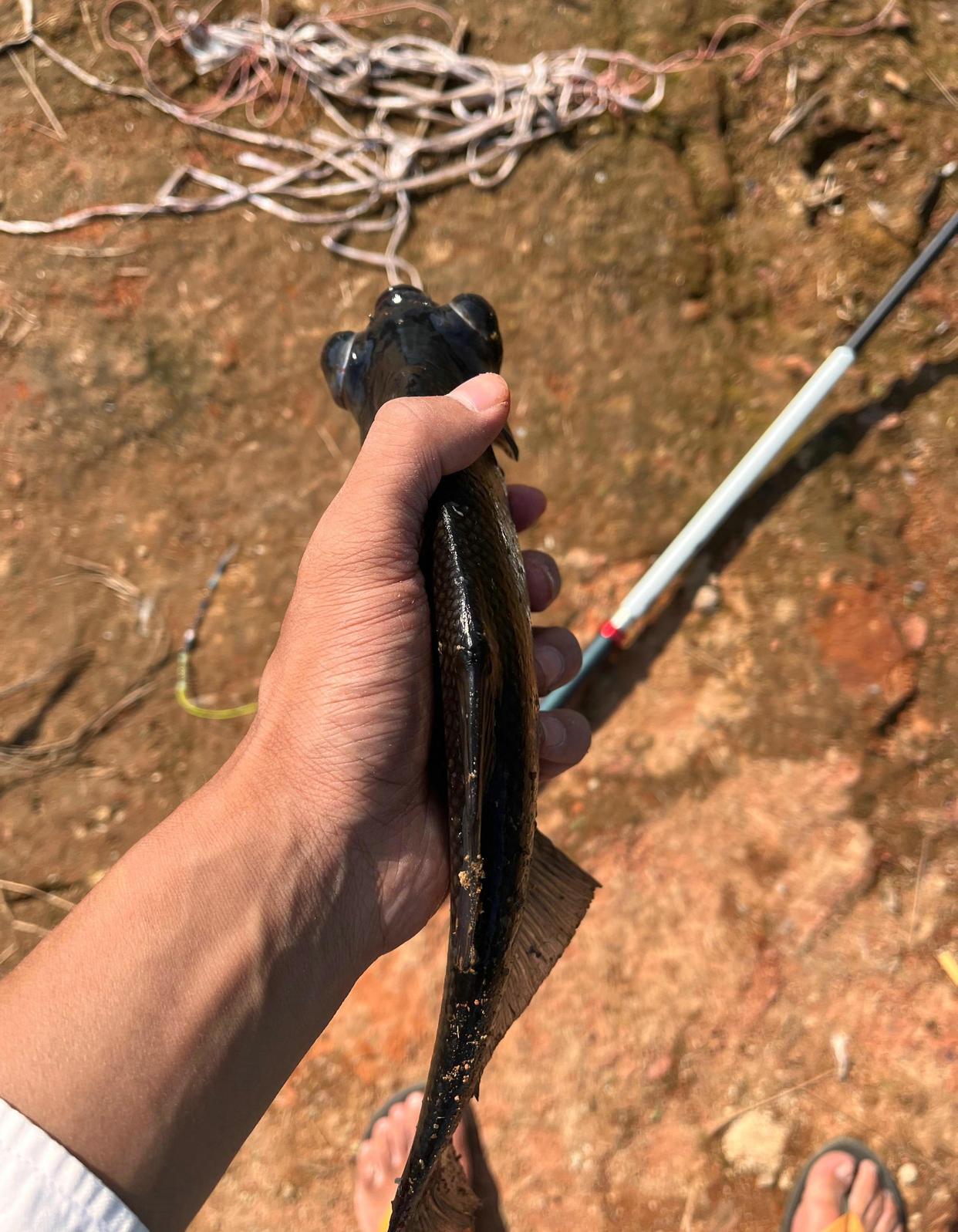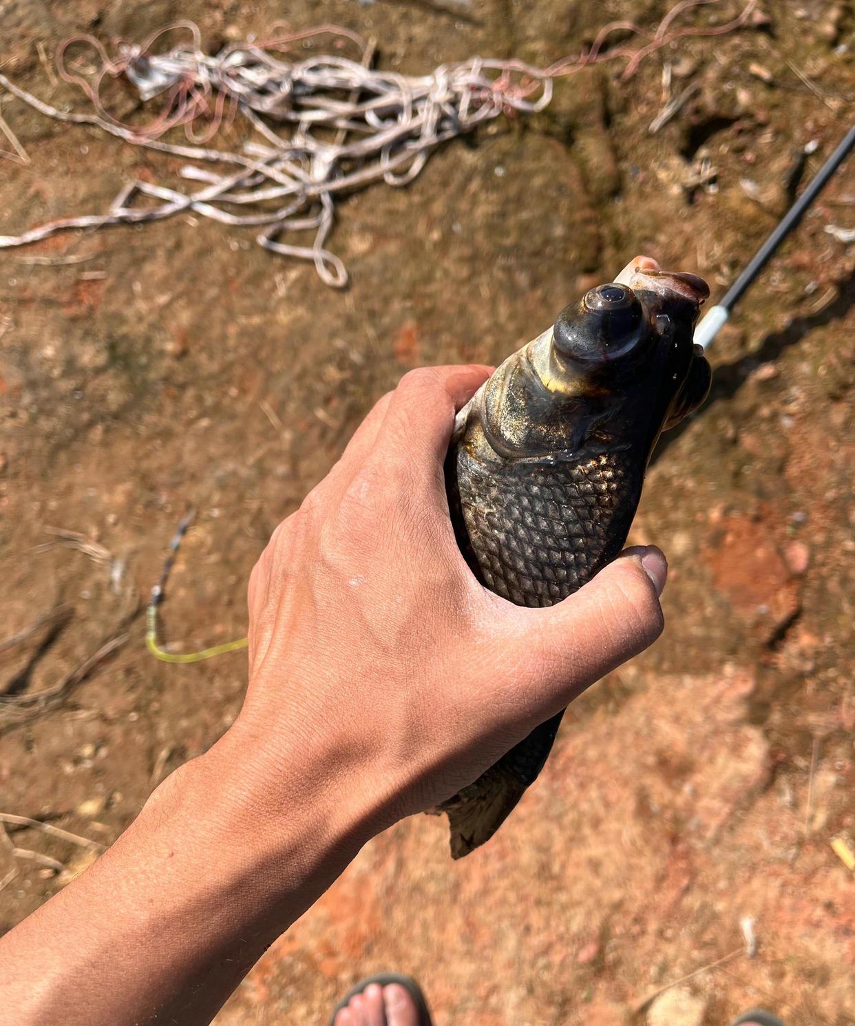 比如下面这位江苏徐州的钓友,在野外一条小河钓鳊鱼时,就钓起来一条外形“诡异”的大眼怪鱼,让他不知道如何处理。