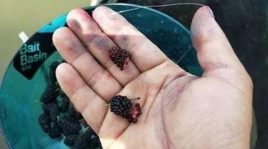 <2>桑葚钓法:桑果成熟时,在塘畔桑树水域,用中长竿钓浮,不用抛撒诱饵,只需取半粒透红的桑甚挂在钩上,进行拖钓,那些吃惯了从树上掉入水中桑果的鳊鱼,以为是从树上落下来“美味”,便纷纷抢食。