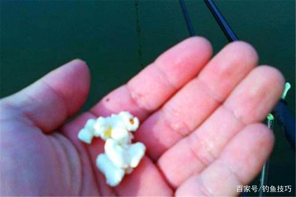 第二种钓法,民间俗称爆米花钓法,其实原理上跟珠珠钓几乎一样,不同的地方在于使用的饵料不是珠子,而是使用爆米花。因为爆米花味道香甜,而且本身就有非常好的浮性,也能实现这种反向钓离底的目的。那为何不直接采用常规钓法来钓离底呢?对于野钓来说,受到刮风、走水的影响其实非常多,常规的钓法在钓浮时容易出现钓组偏离钓点的情况,所以不太适合使用。不管珠珠钓,还是爆米花钓法,在垂钓时还有一个小窍门,把窝料紧紧捏在铅坠上,到位之后窝料雾化聚鱼,上浮离底的饵料会有更高的垂钓效率。