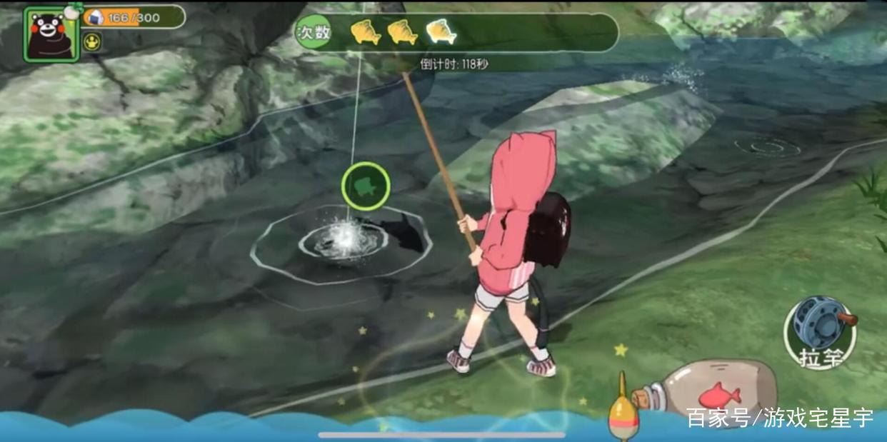 出现感叹号,说明鳊鱼王上钩了,鳊鱼王挣扎的还是很剧烈的,然后屏幕下方会出现小游戏,要把鳊鱼王钓上来玩家就要把跳出来的小游戏给玩通关。