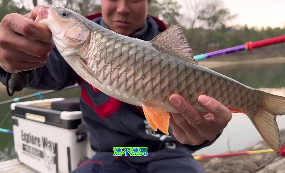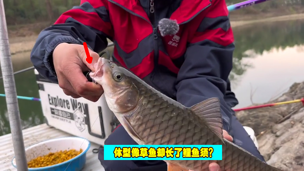 原来,上钩的鱼虽然体型像是草鱼,但却像鲤鱼一样长着粗须子,并且鱼鳍发黄,鱼鳞鲜亮泛彩,看起来非常的漂亮。