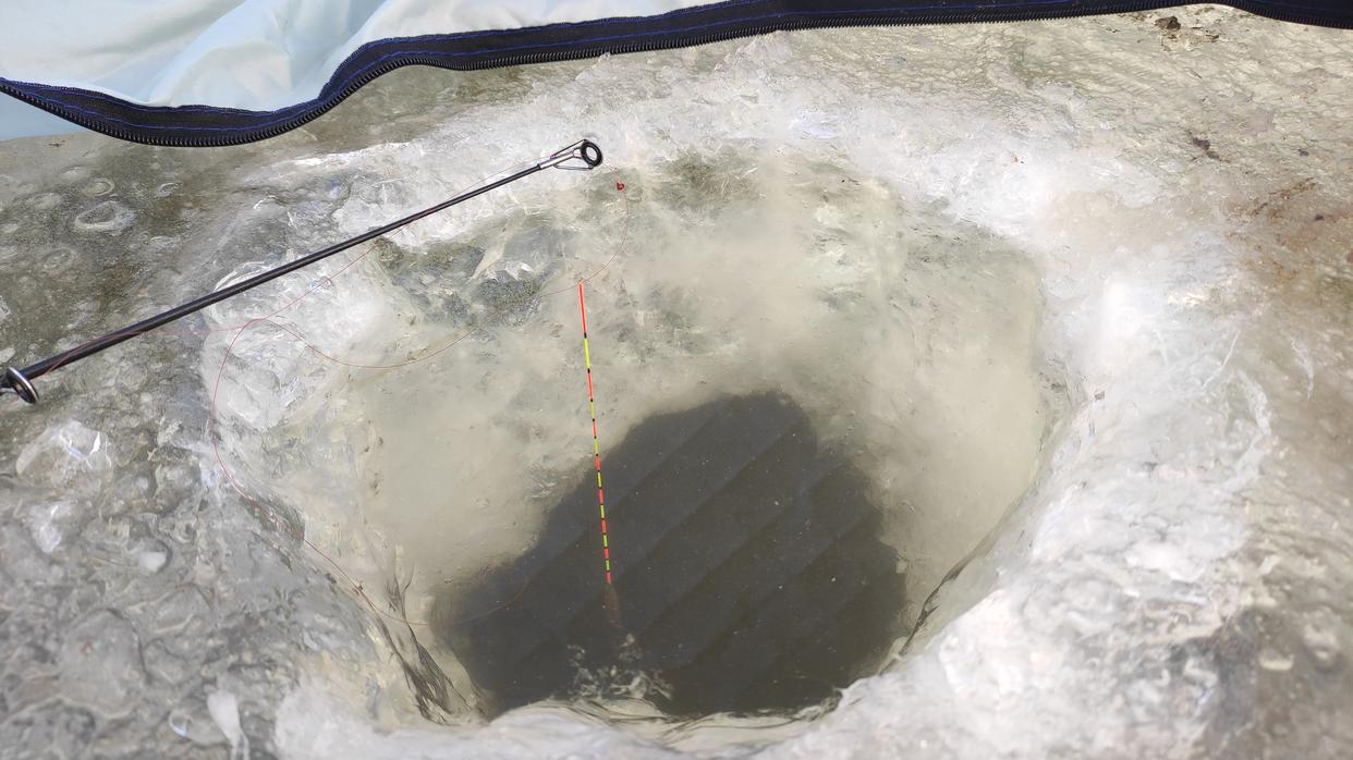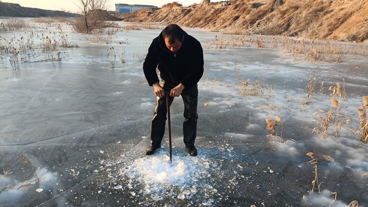 当天的气温并不高,最高气温零下1度最低气温是零下9度,冰层厚度大约40公分左右。小李打完窝子之后一直没口,正在他急得抓耳挠腮的时候,水面上的浮漂却突然消失了。