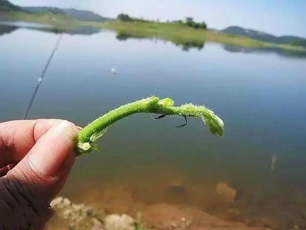 如果钓点附近没有芦苇叶,找一些植物嫩芽挂在鱼钩上,也是可以的。