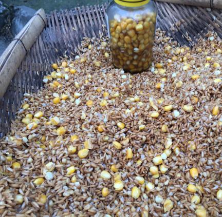 2、谷子洗干净,泡水后上锅蒸煮十五分钟左右,至部分谷子微微开口,关火。随后晾着不烫手为佳,加入小药组合或自制药酒,搅拌几分钟。再盖上锅盖闷一夜。第二天早上开盖,清香扑鼻,装袋则可。