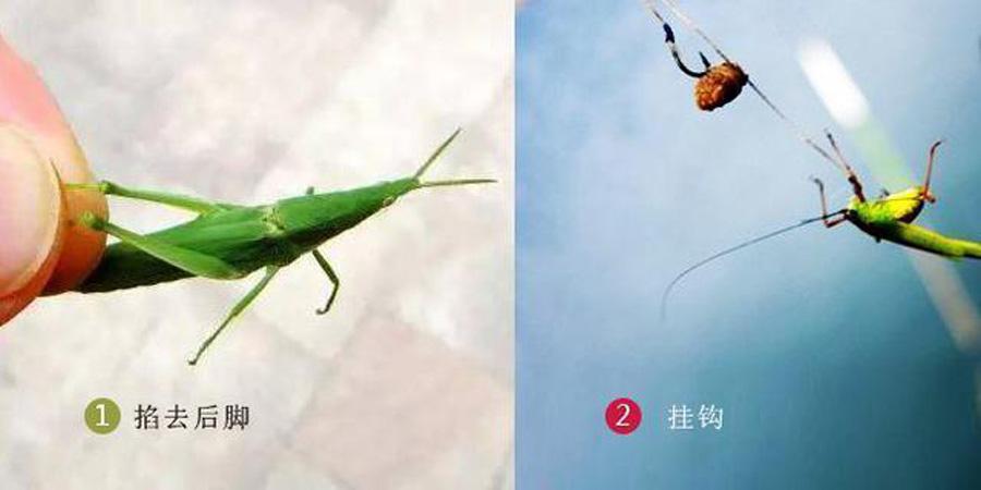 常用的虫饵有蝗虫、蟋蟀、螳螂、飞蛾等做饵,如虫过大,可将其头、翅、腿剪去,从头向尾部穿钩。一般应进行浮钓,也可以半浮钓、底钓。