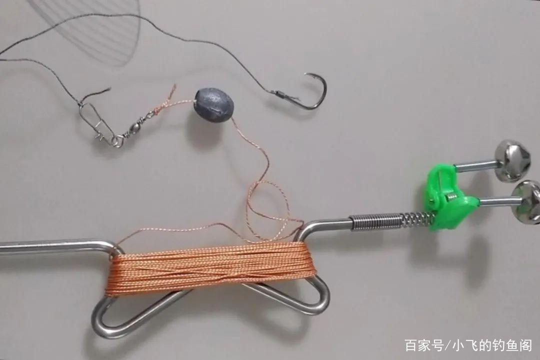 下图这种就是,其实钓组很简单,一根短短的不锈钢地插+大力马线+弹簧+铃铛,鱼线上有一个铅坠、一个连接器还有个鱼钩,就这样。