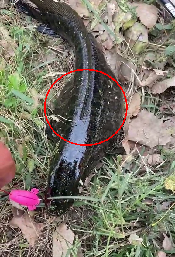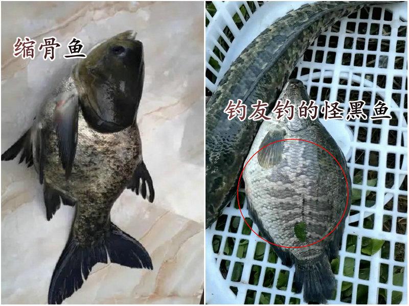 但随后再钓起来的一条“怪黑鱼”,却把他给看呆了——这条“怪黑鱼”只有另一条正常黑鱼体长的一半,但身体宽度却超出正常黑鱼不少,整个鱼身看起来非常的畸形,仿佛得了什么大病或者受过大伤一样。