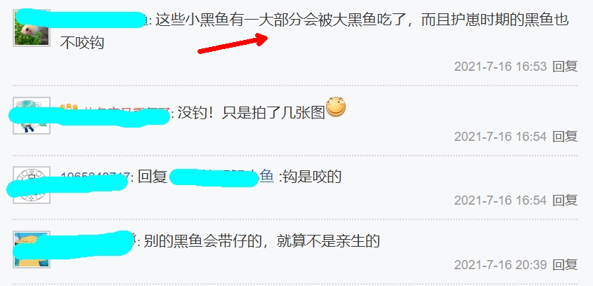 原来,这些网友表示自己曾见过多次“大黑鱼咬仔”——即大黑鱼吞食小黑鱼,因此,这两条大黑鱼看起来是在护仔,但其实最后会把这些小黑鱼吃光,如果不钓走它们,反而会导致这些小黑鱼“全军覆没”。