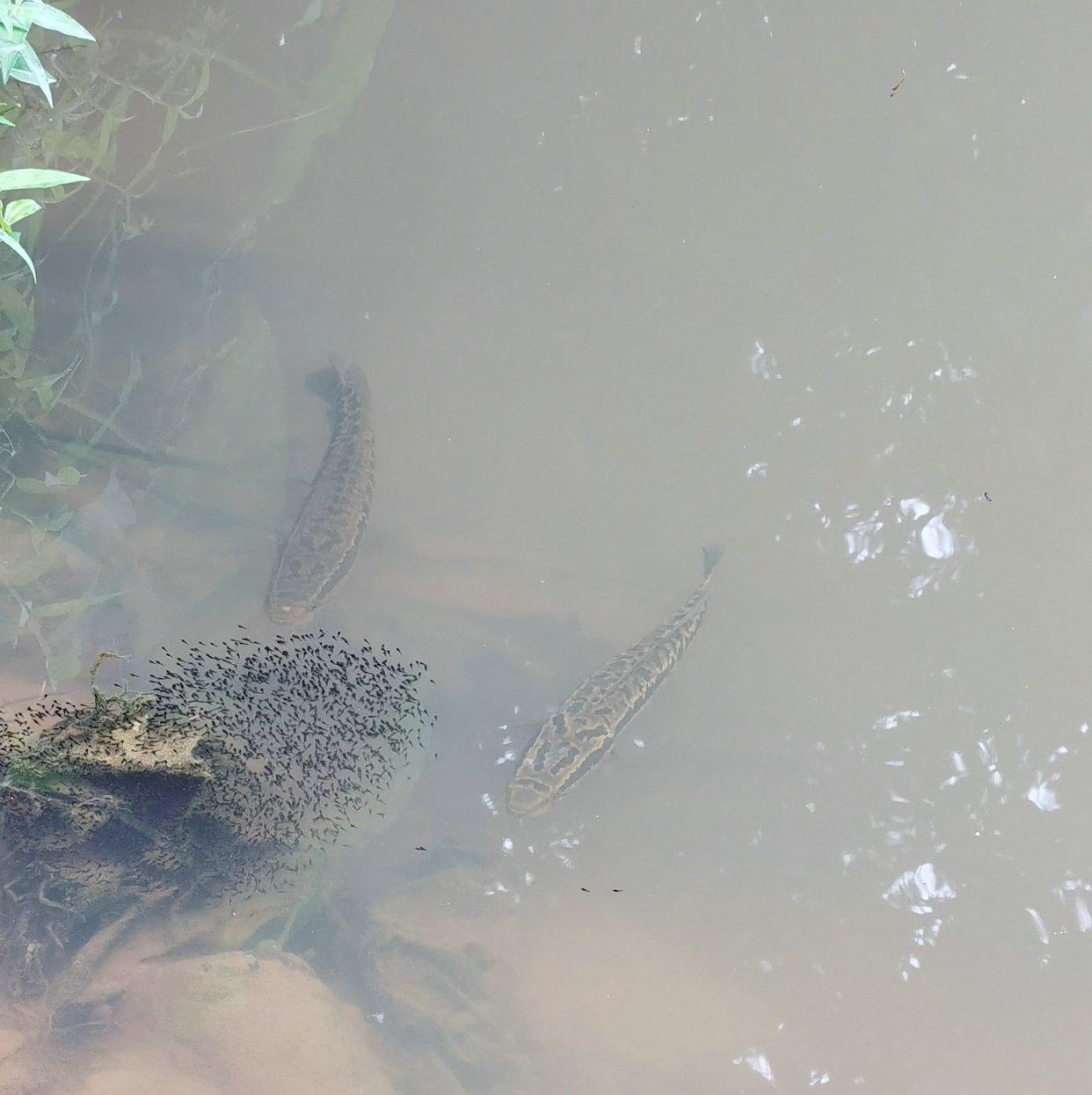 不过,这位广东韶关的钓友在看到这一幕后,却决定放弃钓这两条黑鱼——他认为这是两条正处于繁殖期、护仔状态的黑鱼,“估计是护仔鱼,钓走了不好,还是不钓了”……